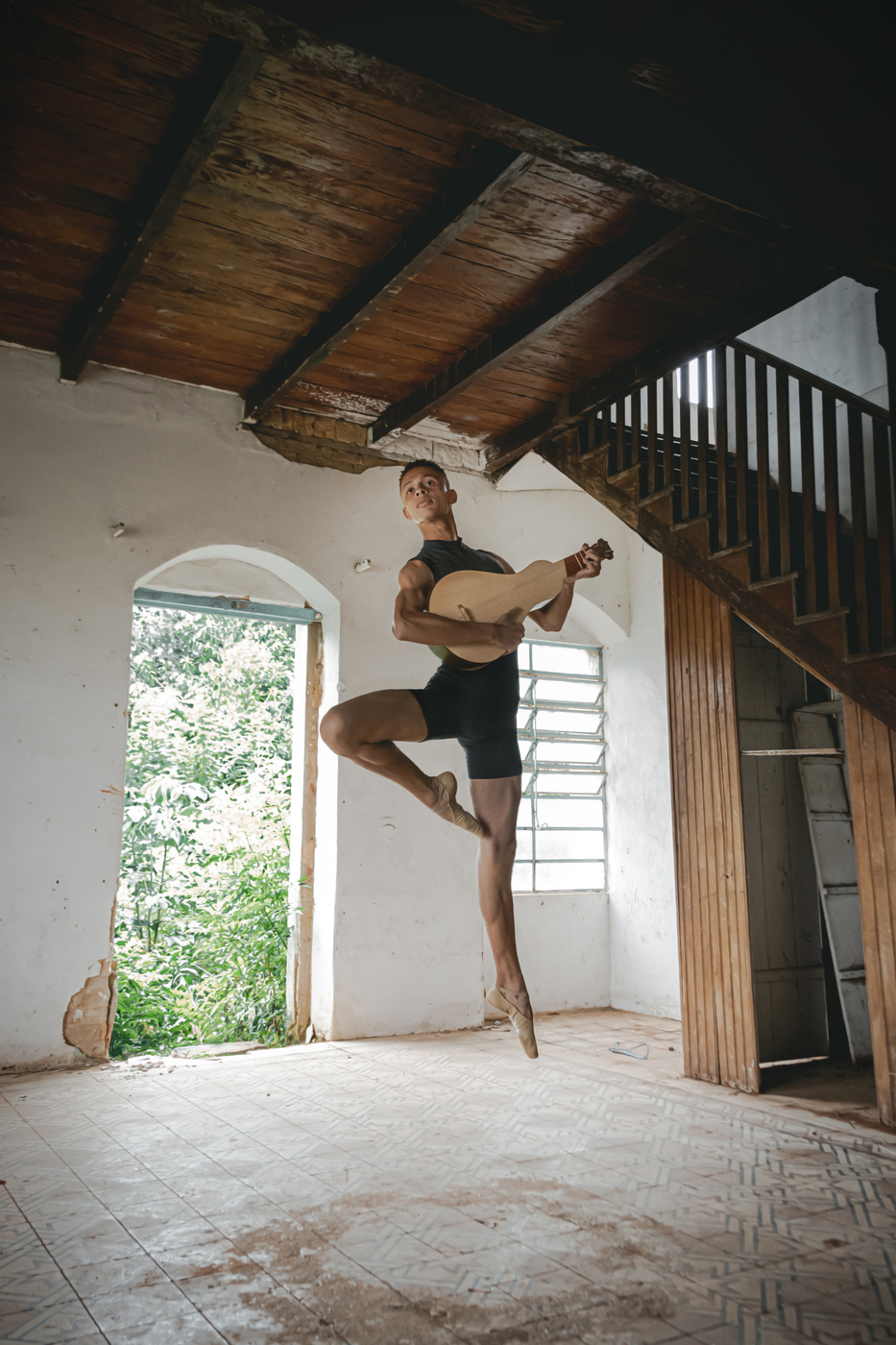 DO BAILARINO HARMONIZA DE MANEIRA NATURAL COM AS CORES E OBJETOS NAS CENAS.